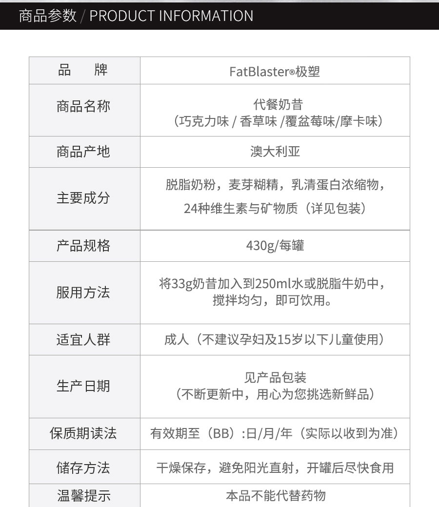 【澳有三仓】 Fatblaster 纤体瘦身代餐奶昔 430g