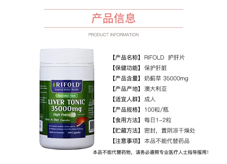 【澳洲直邮】Rifold 澳洲直邮保健品 奶蓟草护肝养身宝 护肝片100粒
