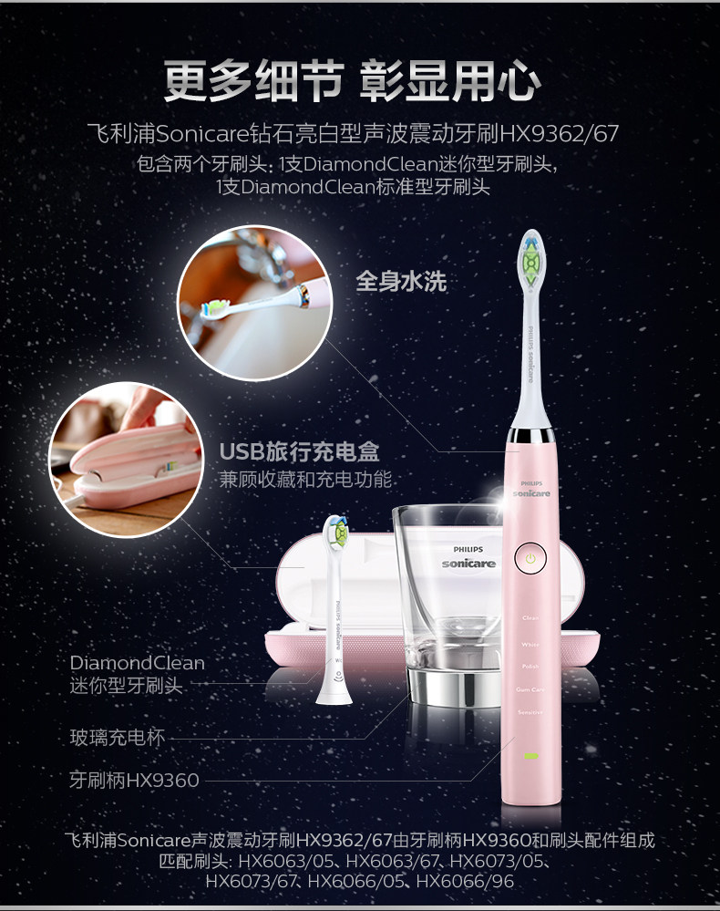 温馨提示:产品购于澳洲,无中文标签!Philips飞利浦声波高端系列电动牙刷2支装。2个牙刷+2个刷头+1个座充+2个旅行方便盒。粉色*1,黑色*1。温馨提示:产品购于澳洲,无中文标签,仅限个人自用,不得二次出售!