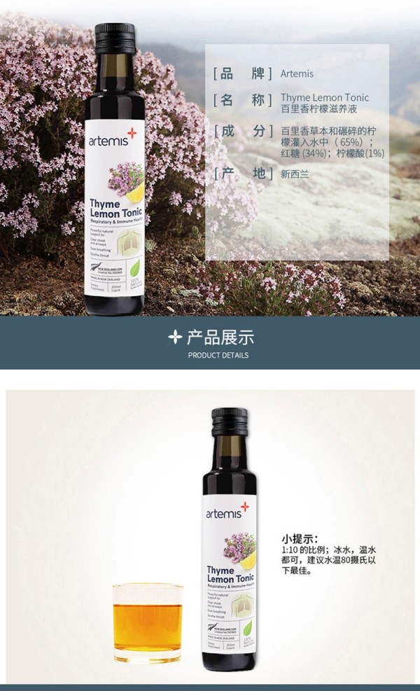 【熊猫出没】Artemis 百里香柠檬滋养液 250ml新版 南沙仓