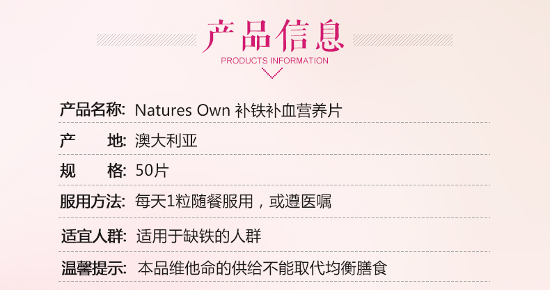 【超市代购】Nature's Own Iron Plus 补铁营养片50片