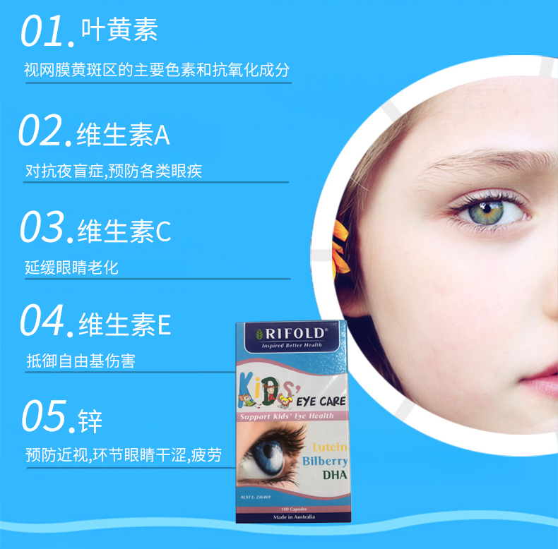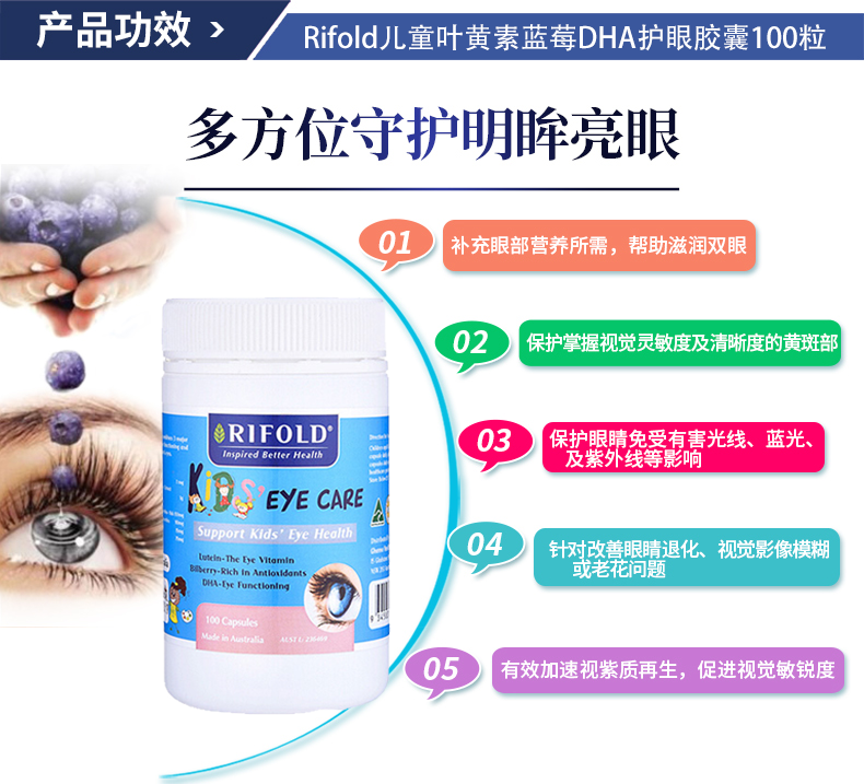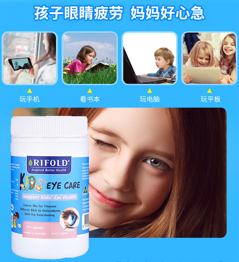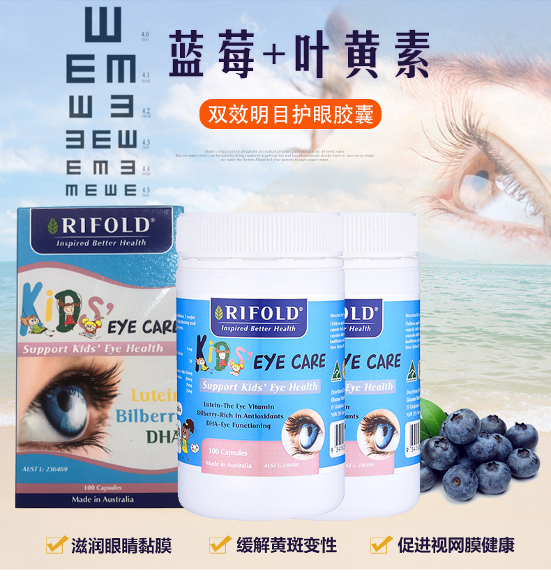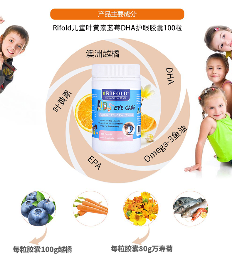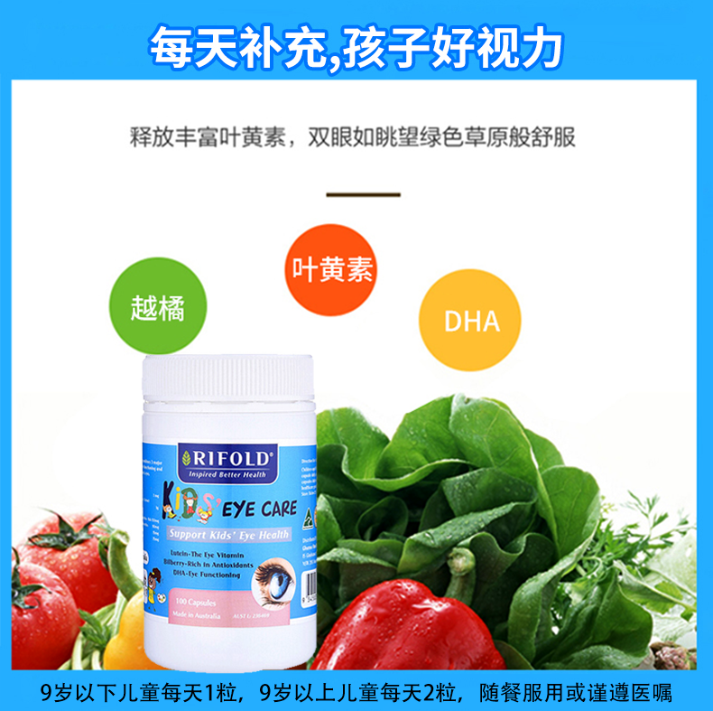 【澳洲直邮】Rifold儿童护眼咀嚼片含叶黄素蓝莓DHA 100粒装