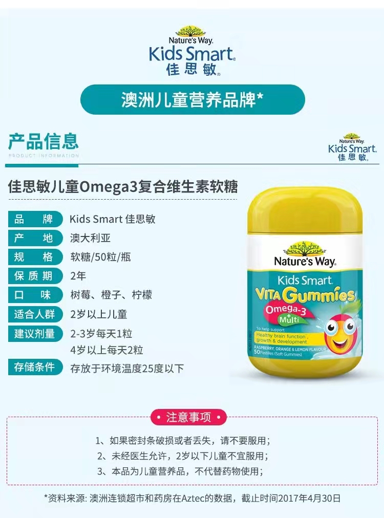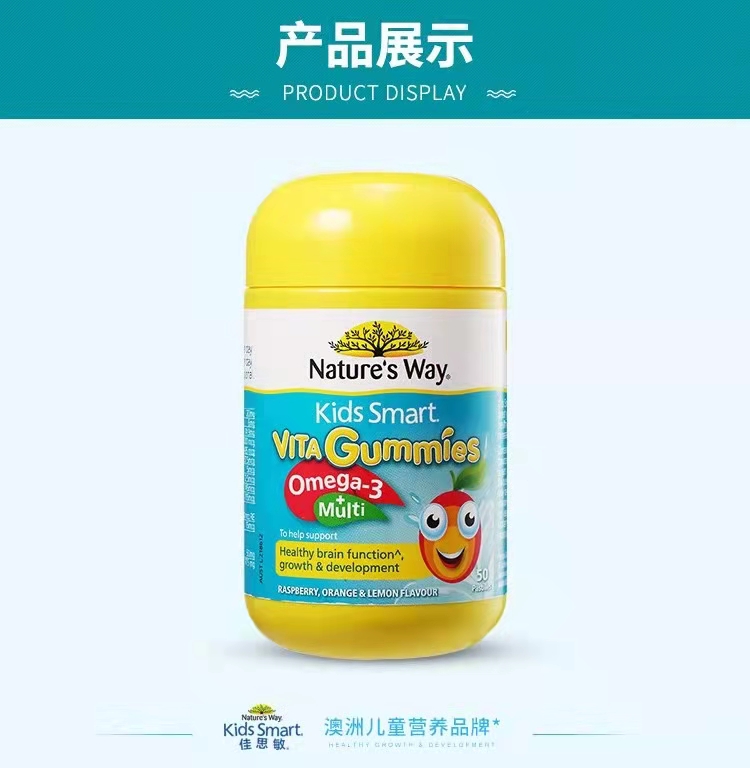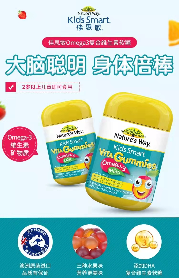 【澳洲直邮】Natures Way 儿童软糖 50粒(Omega3+复合维生素)(跨境运输遇高温天气可能会出产品融化现象,建议加够锡纸包装,否则若出现融化现象快递公司不予理赔 )